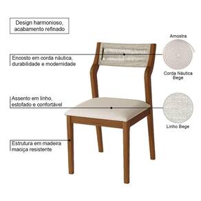 AS IMAGENS SÃO MERAMENTE ILUSTRATIVAS E PODEM SOFRER VARIAÇÕES DE COR E PEQUENOS DETALHES DE ACORDO COM O SEU MONITOR, ILUMINAÇÃO DO AMBIENTE E ATÉ MESMO A SUA PERCEPÇÃO VISUAL.Conjunto 4 Cadeiras de Jantar Lagum Jequitibà Terra Encosto Linho Bege e Corda NÃutica
