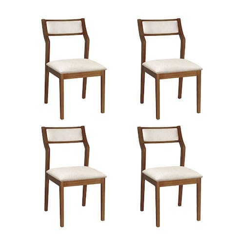AS IMAGENS SÃO MERAMENTE ILUSTRATIVAS E PODEM SOFRER VARIAÇÕES DE COR E PEQUENOS DETALHES DE ACORDO COM O SEU MONITOR, ILUMINAÇÃO DO AMBIENTE E ATÉ MESMO A SUA PERCEPÇÃO VISUAL.Conjunto 4 Cadeiras de Jantar Lagum Jequitibà Terra Encosto Linho Bege