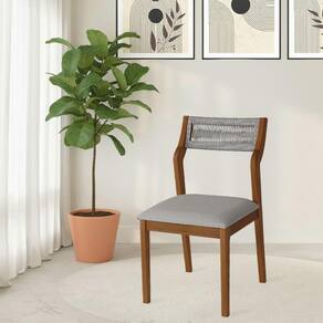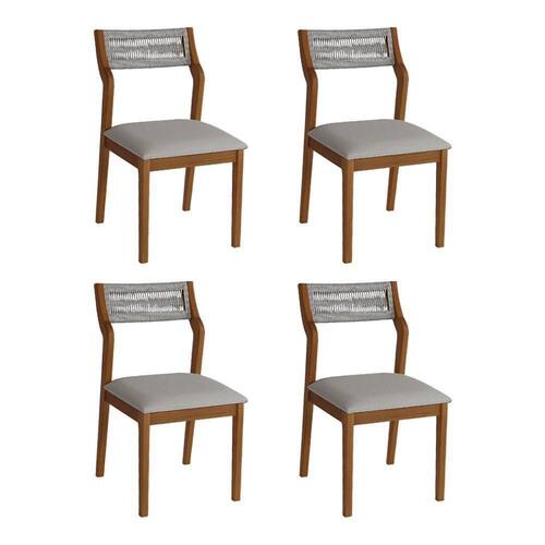 AS IMAGENS SÃO MERAMENTE ILUSTRATIVAS E PODEM SOFRER VARIAÇÕES DE COR E PEQUENOS DETALHES DE ACORDO COM O SEU MONITOR, ILUMINAÇÃO DO AMBIENTE E ATÉ MESMO A SUA PERCEPÇÃO VISUAL.Conjunto 4 Cadeiras de Jantar Lagum Jequitibà Terra Encosto Linho Cinza