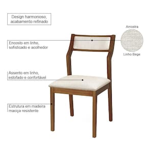 AS IMAGENS SÃO MERAMENTE ILUSTRATIVAS E PODEM SOFRER VARIAÇÕES DE COR E PEQUENOS DETALHES DE ACORDO COM O SEU MONITOR, ILUMINAÇÃO DO AMBIENTE E ATÉ MESMO A SUA PERCEPÇÃO VISUAL.Conjunto 4 Cadeiras de Jantar Lagum Jequitibà Terra Encosto Premium Linho Bege