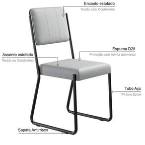 Linha: Sala de Jantar | Comprimento: 46 | Profundidade: 52 | Altura: 87 | Altura do Assento até o chão: 49 | Altura do Encosto até o chão: 56.5 | Dimensões do Assento: 43,5x44x8cm | Dimensões do Encosto: 42,5x30,5x3,7cm | Peso Líquido: 23.8 | Material Principal Composição: Aço/MDP/Espuma/Tecido | Material da Estrutura Pés: Aço | Acabamento Estrutura: Epóxi-Pó | Tipo de Encosto: Fixo | Material Estrutura do Encosto: Aço | Enchimento Encosto: Espuma D-22 | Revestimento do Encosto: Tecido | Tipo do Assento: Fixo | Material Estrutura do Assento: MDP | Enchimento Assento: Espuma D-28 | Revestimento do Assento: Tecido | Possui Braços: Não | Tipo: Cadeira | Modelo: Fixo | Empilhável: Não | Dobrável: Não | Ambiente Principal: Sala de Estar Jantar | Estilo: Contemporâneo | Suporta Até (kg): 120kg | Altura da cadeira: 86,5 | Largura do assento: 42 | Requer montagem: Sim | Quantidade de cadeiras por conjunto: 4 | Inclui manual de montagem: Sim | Profundidade do assento: 50 | Marca: Compace