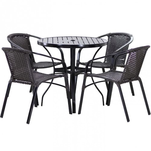 Itens Incls: 04 Cadeiras Floripa em Aluminio Pintado 01 Mesa Roma com Tampo Ripado