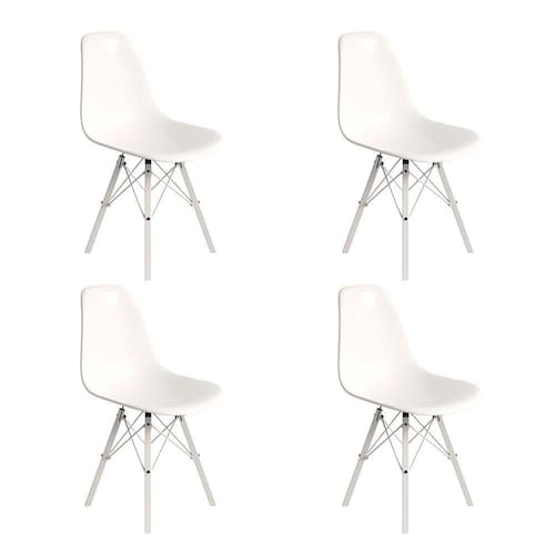ATENÇÃO AS IMAGENS SÃO MERAMENTE ILUSTRATIVAS E PODEM SOFRER VARIAÇÕES DE COR E PEQUENOS DETALHES DE ACORDO COM O SEU MONITOR, ILUMINAÇÃO DO AMBIENTE E ATÉ MESMO A SUA PERCEPÇÃO VISUAL.Conjunto 4 Cadeiras Eames Design Moderno Tubo de Ferro Branco Assento Branco