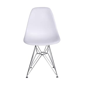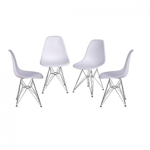 As 4 cadeiras do kit Eames DKR OR-1102 são produzidas em polipropileno com base cromada e fios de aço carbono entrelaçados, proporcionando uma estrutura resistente. Excelente opção para deixar o espaço muito mais aconchegante e com visual atraente. Estas cadeiras são resistentes a risco, de fácil limpeza e suportam 120 Kg. Ambiente: Sala de Estar Cor: Branco Informação Complementar: 4x Cadeira Eames Base Eiffel Branco Largura: 46,5 cm Altura: 80,5 cm Peso: 4,62 kg Profundidade: 42 cm Necessita Montagem: Sim