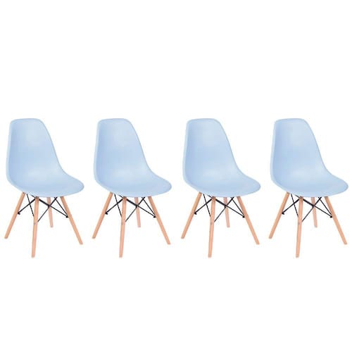 O Conjunto 4 Cadeiras Eiffel com Base em Madeira – Azul é ideal para compor e decorar ambientes. Composto por cadeiras Eames Eiffel que suportam até 120kg cada e possuem assento em Polipropileno, o conjunto é perfeito para proporcionar conforto e beleza para sua casa.