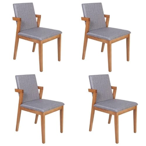 Conjunto 4 Cadeiras Estofadas Luna Cinza Escuro Conjunto 4 Cadeiras Estofadas Luna Cinza Escuro - Características Gerais do Produto: - Altura Total: 88,00 Cm - Altura do Assento: 48,00 Cm - Largura: 47,00 Cm - Altura do Encosto: 41,00 Cm - Profundidade: 59,00 Cm - Largura do Assento: 49,00 Cm - Profundidade do Assento: 44,00 Cm - Acabamento: Selador Nogueira Fosco - Resistência: 120 Kg - Peso Unitário: 10 Kg - Garantia: 03 Meses Contra Defeitos de Fabricação. - Limpeza e Manutenção: Não manter em área externa e com umidade excessiva, não utilizar produtos abrasivos, limpe com pano - Complexidade de Montagem: Fácil - Material da Estrutura: Madeira Maciça - Tecido: Linho Garantia: - 3 Meses Contra Defeitos de Fabricação