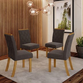 Características: Escala de Brilho: Fosco Estilo: Moderno Linha ou Coleção: Lupita Ambiente Principal: Sala de Jantar Peso Suportado por cada Cadeira: 120 Kgs Estrutura do Assento: MDP/MDF Altura do Assento até o chão: 45,5 cm Revestimento do Assento: Suede Enchimento do Assento: Espuma D23 Almofada do Assento: Fixa Tipo de Assento: Fixo Estrutura do Encosto: MDP/MDF Revestimento do Encosto: Suede Enchimento do Encosto: Espuma D15 Tipo de Encosto: Fixo Acabamento da Estrutura: Pintura UV Texturizada Material da Estrutura: MDF Peso de 1 Cadeira Montada: 7,5 Kgs Altura de 1 Cadeira Montada: 95 cm Largura de 1 Cadeira Montada: 44 cm Profundidade de 1 Cadeira Montada: 57,5 cm Possui Rodízio: Não