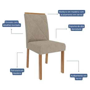 Conjunto 4 Cadeiras Fernanda Wood - Cimol Móveis O Conjunto de Cadeiras Fernanda Wood combina sofisticação e resistência, com estrutura e pés em Madeira Tauari e acabamento em verniz. O assento revestido em tecido e espuma de alta densidade proporciona conforto, enquanto o encosto com detalhe bordado adiciona um toque de elegância. Com design clássico e acabamento refinado, cada cadeira suporta até 100kg, tornando-se a escolha perfeita para compor ambientes acolhedores e sofisticados.