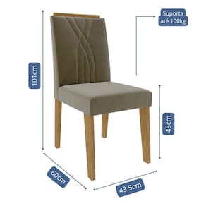 Conjunto 4 Cadeiras Nicole Nature/suede Joli - Cimol Móveis Nature/suede Joli Conjunto 4 Cadeiras Nicole - Cimol Móveis O Conjunto de Cadeiras Nicole une sofisticação e conforto para compor sua sala de jantar com elegância. Sua estrutura em MDF com acabamento em pintura UV garante resistência e durabilidade. O assento revestido em tecido e a espuma de alta densidade proporcionam máximo conforto. O encosto com detalhes bordados e a moldura em MDF com acabamento em laca agregam um toque refinado ao design. Com pés em MDF e capacidade para suportar até 100kg, é a escolha perfeita para quem busca estilo e qualidade. ESPECIFICAÇÕES: - Estrutura em MDF - Pintura UV - Revestimento em tecido - Espuma de alta densidade - Encosto com detalhes bordados - Moldura em MDF com acabamento em laca - Pés em MDF - Cada cadeira tem capacidade para suportar até 100kg