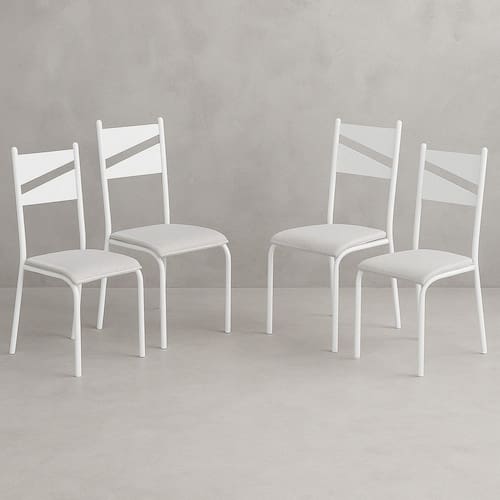 *Podem ocorrer variações de cores nos assentos das cadeiras em relação às fotos.* Acabamento: Pintura Epóxi Almofada do assento: Fixa Altura do assento até o chão: 44 cm Ambiente Principal: Cozinha codigo_ean: 7900288209962 Complexidade da Montagem: Baixa: pode ser montado por uma pessoa sozinha Cor: Branco/Cinza Cor do Produto: Branco/Cinza Cor dos Pés: Branco Dobrável: Não Escala de Brilho: Brilhante Estrutura do Encosto: Aço Giratória: Não Itens Inclusos: 4 Cadeiras, Kit Ferragem e Manual de Montagem Manual de Montagem e Instalação: https://product-hub-prd.madeiramadeira.com.br/941439710/documents/8d6686c1-1395-4e2d-91df-a8aea25e1bd13126654654817546779021278.pdf Marca: MBM DECOR Material dos Pés: Aço Material Principal: Aço Necessita Montagem: Sim Origem do Produto: Nacional Peso: 2,9 kg Possui Apoio para Braços: Não Possui Apoio Para os Pés: Não Possui Assento/Encosto Estofados: Possui Somente o Encosto Estofado Possui Espaldar: Não Possui Rodízio: Não Quantidade de Itens: 4 Recomendações de Uso, Manutenção e Limpeza: Limpar com pano úmido. Uso recomendado para adultos e áreas internas. Sistema de Montagem: Já vai com todos parafusos necessários. Necessíta chave Philips. Tipo de Assento: Fixo Tipo de Encosto: Fixo Marca: Não Informado
