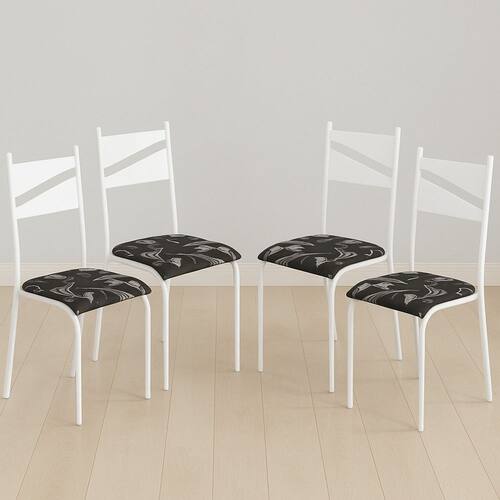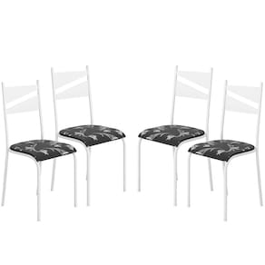 *Podem ocorrer variações de cores nos assentos das cadeiras em relação às fotos.* Acabamento: Pintura Epóxi Almofada do assento: Fixa Altura do assento até o chão: 44 cm Ambiente Principal: Cozinha codigo_ean: 7900288210074 Complexidade da Montagem: Baixa: pode ser montado por uma pessoa sozinha Cor: Branco/Preto Floral Cor do Produto: Branco/Preto Floral Cor dos Pés: Branco Dobrável: Não Escala de Brilho: Brilhante Estrutura do Encosto: Aço Giratória: Não Itens Inclusos: 4 Cadeiras, Kit Ferragem e Manual de Montagem Manual de Montagem e Instalação: https://product-hub-prd.madeiramadeira.com.br/508889663/documents/01e01fc2-d05c-4071-a17c-4a9a5509a6a83126654654817546779021278.pdf Marca: MBM DECOR Material dos Pés: Aço Material Principal: Aço Necessita Montagem: Sim Origem do Produto: Nacional Peso: 2,9 kg Possui Apoio para Braços: Não Possui Apoio Para os Pés: Não Possui Assento/Encosto Estofados: Possui Somente o Encosto Estofado Possui Espaldar: Não Possui Rodízio: Não Quantidade de Itens: 4 Recomendações de Uso, Manutenção e Limpeza: Limpar com pano úmido. Uso recomendado para adultos e áreas internas. Sistema de Montagem: Já vai com todos parafusos necessários. Necessíta chave Philips. Tipo de Assento: Fixo Tipo de Encosto: Fixo Marca: Não Informado
