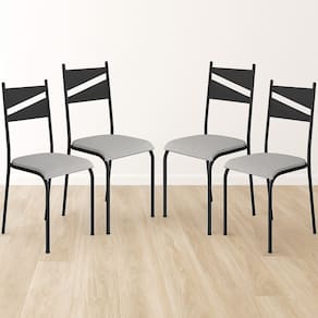 *Podem ocorrer variações de cores nos assentos das cadeiras em relação às fotos.* Acabamento: Pintura Epóxi Almofada do assento: Fixa Altura do assento até o chão: 44 cm Ambiente Principal: Cozinha codigo_ean: 7900288209856 Complexidade da Montagem: Baixa: pode ser montado por uma pessoa sozinha Cor: Preto/Cinza Cor do Produto: Preto/Cinza Cor dos Pés: Preto Dobrável: Não Escala de Brilho: Fosco Estrutura do Encosto: Aço Giratória: Não Itens Inclusos: 4 Cadeiras, Kit Ferragem e Manual de Montagem Manual de Montagem e Instalação: https://product-hub-prd.madeiramadeira.com.br/671462419/documents/d073d740-3a04-4ae4-bdc1-8ffce46a964e3126569654817546767328525.pdf Marca: MBM DECOR Material dos Pés: Aço Material Principal: Aço Necessita Montagem: Sim Origem do Produto: Nacional Peso: 2,9 kg Possui Apoio para Braços: Não Possui Apoio Para os Pés: Não Possui Assento/Encosto Estofados: Possui Somente o Assento Estofado Possui Espaldar: Não Possui Rodízio: Não Quantidade de Itens: 4 Recomendações de Uso, Manutenção e Limpeza: Limpar com pano úmido. Uso recomendado para adultos e áreas internas. Sistema de Montagem: Já vai com todos parafusos necessários. Necessíta chave Philips. Tipo de Assento: Fixo Tipo de Encosto: Fixo Marca: Não Informado