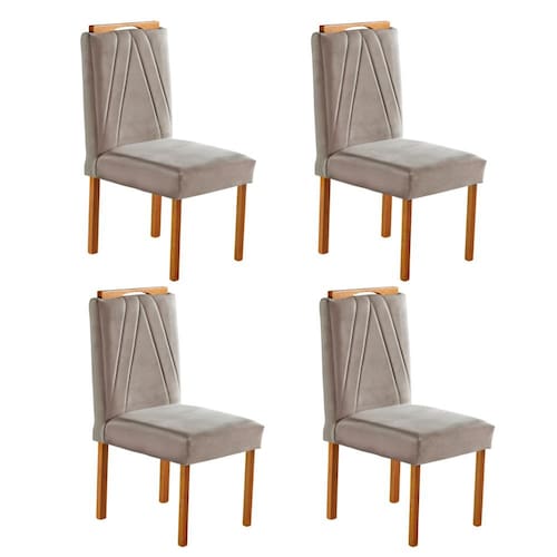 Conjunto 4 Cadeiras Safira em Madeira Maciça e Tecido Veludo Móveis Mundial