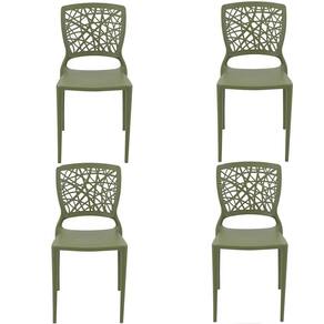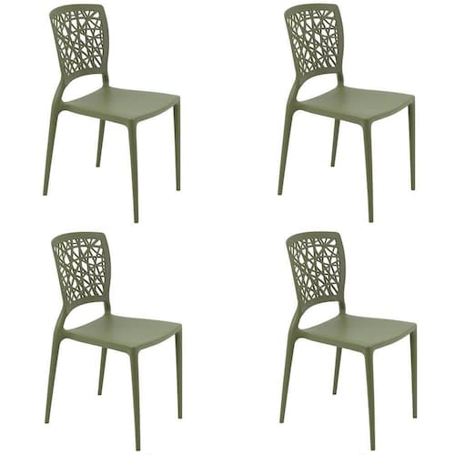 O conjunto é composto por 4 cadeiras Tramontina Joana na cor verde oliva, modelo 92058027.