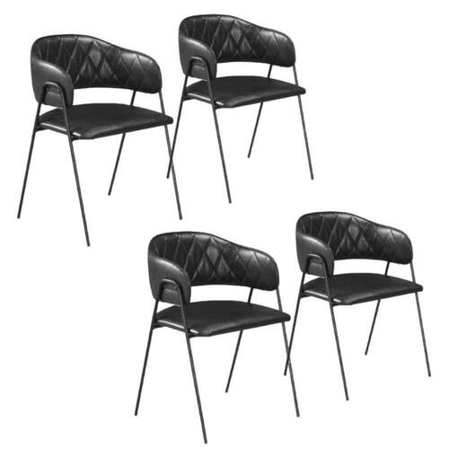 Apresentamos o Conjunto 4 Cadeiras Veneza, uma fusão de estilo e conforto que eleva a estética do seu ambiente. O estofamento em Couro Preto não apenas adiciona um charme visual, mas também oferece uma experiência de assento luxuosa e aconchegante à sua sala de jantar, escritório ou espaço de convívio. Estas cadeiras oferecem um assento confortável, proporcionando uma experiência agradável durante períodos prolongados. Seja para complementar uma mesa de jantar ou adicionar um toque contemporâneo a outros ambientes, o Conjunto 4 Cadeiras Veneza no Couro Preto e Metal Preto é a escolha ideal para quem busca um design refinado, durabilidade e conforto, tudo em um único conjunto. Transforme seu espaço em um ambiente acolhedor e estiloso com estas cadeiras que são verdadeiras obras de arte funcionais.