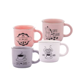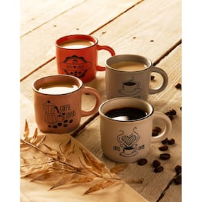 Descrição Conjunto 4 Canecas de Café de Cerâmica Coffee Lovers 60ml - Wolff