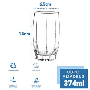 Conjunto Copos De Vidro Transparente Long Drink Amadeus 374ML 4 Unidades