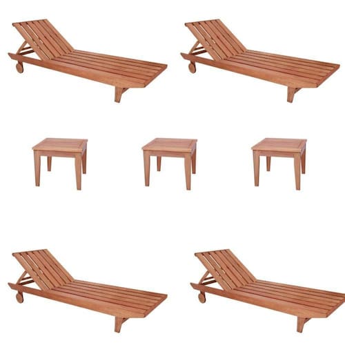 Conjunto 4 Espreguiçadeiras E 3 Mesinha de Centro Para Jardim em Madeira Maciça