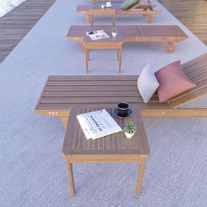 Seu ambiente merece o melhor! A Mesa Suporta Até: 25 Acompanha Cadeiras: Não Acompanha Espreguiçadeira: Sim Altura Ajustável: Não Altura do Conjunto: 42 Ambiente Principal: Jardim e Varanda Base Antiderrapante: Não Complexidade da Montagem: Baixa: pode ser montado por uma pessoa sozinha Cor: Madeira Cor do Produto: Madeira Espreguiçadeira Dobrável: Não Informações Complementares: Devido a madeira ser maciça pode sofrer pequenas variações em sua coloração. Itens Inclusos: 4 Espreguiçadeiras + 3 Mesinhas Manual de Montagem e Instalação: https://product-hub-prd.madeiramadeira.com.br/886491/documents/939058ba-e415-4619-b251-8b5441e3256b1726821manual064079.pdf Material da Base da Mesa: Madeira Maciça Material do Tampo: Madeira Maciça Material Principal: Madeira Maciça Medida do Tampo: 50x50 Medidas da Base da Mesa: 50x50x42 Medidas da Espreguiçadeira: 192x64x25 Medidas da Mesa: 50x50x42 Mesa Dobrável: Não Necessita Montagem: Sim Origem do Produto: Nacional Peso da Mesa: 8 Possui Suporte para Copo: Não Possui travamento: Não Reclinação do Encosto: 03 Posições Recomendações de uso: Se exposta a intempéries, necessária manutenção de tempos em tempos. Para a manutenção a fábrica indica uso de óleo mineral ou stein e nada mais além disso. Antes de começar a utilizar, também sugerimos a aplicação de óleo mineral, que hidrata e protege a Resistência à Água: Sim Tampa com orifício removível: Não Tampo Fixo: Sim Tipo de Madeira Maciça da Base da Mesa: Eucalipto Tipo de Madeira Maciça do Tampo: Eucalipto