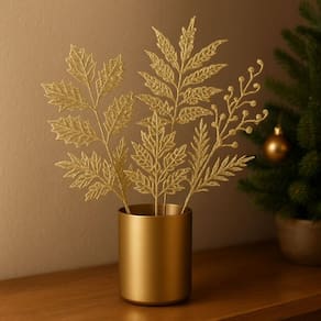Produzidos com material leve, resistente e de fácil manuseio, os galhos possuem acabamento em glitter na tonalidade champanhe, que proporciona um brilho elegante e discreto – ideal para quem busca uma decoração de Natal mais refinada e moderna.