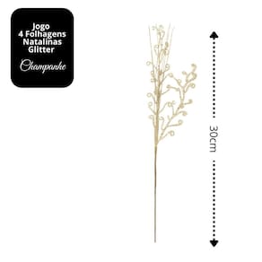 Adicione um toque de brilho e sofisticação à sua decoração natalina com este Conjunto de 4 Galhos Decorativos com Glitter Champanhe, perfeitos para compor arranjos de mesa, guirlandas, árvores de Natal ou qualquer projeto DIY. Com altura de 30cm, cada galho possui um modelo único de folhagem, oferecendo variedade e harmonia visual à sua composição.