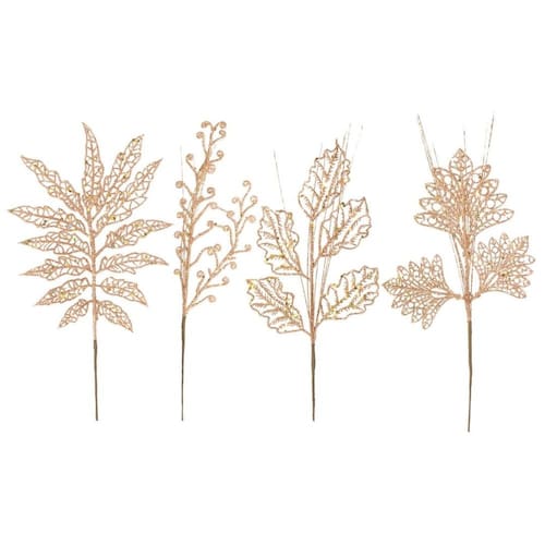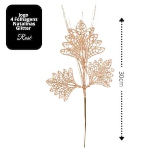 Kit 4 Galhos Natalinos Folhagem Decorativa Glitter Rosê 30cm