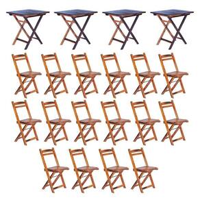 AS IMAGENS SÃO MERAMENTE ILUSTRATIVAS E PODEM SOFRER VARIAÇÕES DE COR E PEQUENOS DETALHES DE ACORDO COM O SEU MONITOR, ILUMINAÇÃO DO AMBIENTE E ATÉ MESMO A SUA PERCEPÇÃO VISUAL.Conjunto 4 Mesas DobrÃveis com 16 Cadeiras 100% Madeira MaciÃa Ypà Cerejeira