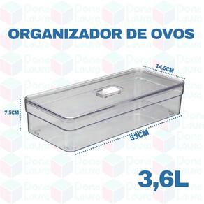 ORGANIZADOR DE OVOS - 21 UNIDADES - 3,6L O organizador de ovos com tampa clear fresh é o novo padrão de transparência na organização da sua geladeira. Empilhe, encaixe e enxergue facilmente os ovos armazenados na geladeira, mantendo tudo em ordem. Seu design foi pensado para permitir armazenagem no interior da geladeira ao invés da porta, evitando troca de temperaturas constantes que podem deteriorar os ovos, mantendo uma rotina sem desperdícios. Produzido em material resistente, super transparência, beleza e cuidado com o alimento são características da linha, perfeitas para auxiliar na organização da sua geladeira e facilitar o seu dia a dia.