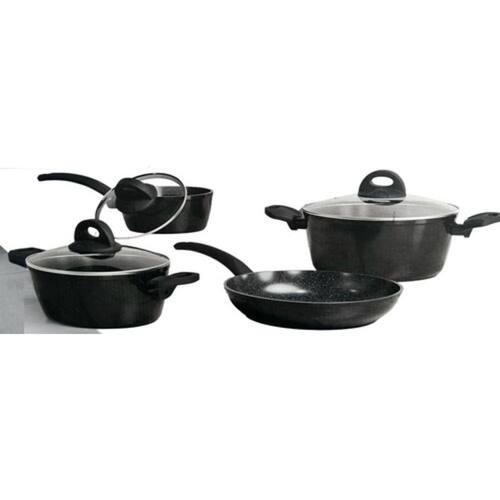 O conjunto inclui quatro peças essenciais: uma caçarola de 20cm, outra de 24cm, uma frigideira de 24cm e uma panela de 16cm. Com um revestimento cerâmico de alta qualidade, estas panelas garantem uma distribuição uniforme do calor e uma superfície antiaderente para resultados perfeitos a cada uso.