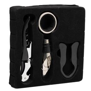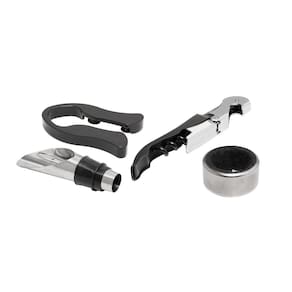 O conjunto de 4 peças de aço inox para vinho da Lyor é o acessório ideal para os amantes da boa bebida. Composto por um saca rolhas, um bico dosador, um cortador de lacre e um anel para garrafa de vinho, este conjunto combina funcionalidade e elegância em cada peça.