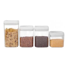 Conjunto 4 Potes Acrílico Para Mantimentos C/ Tampa Á Vácuo
