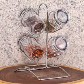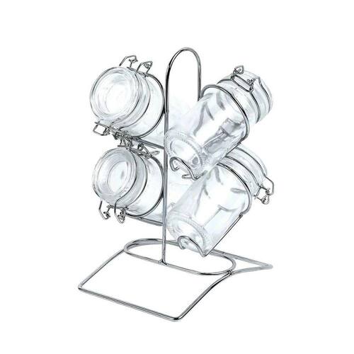 Conjunto 4 Potes para Temperos de Vidro com Tampa Hermética e Suporte de Metal Cromado 65ml - Lyor