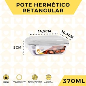 Pote de Vidro com Tampa Hermética Retangular - 370ml