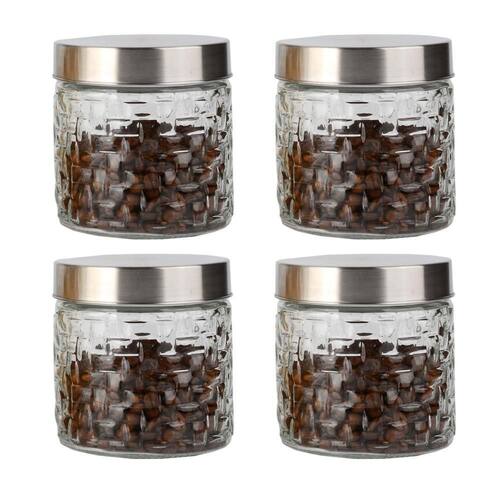 Conjunto 4 Potes Vidro Rattan Tampa Inox 800Ml Class Home