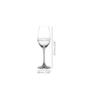 A Taça de Champanhe é perfeita para desenvolver e exibir as características complexas do champanhe. Este copo permite que uma ampla gama de aromáticos se desenvolva. Ao contrário de uma flauta, o design em forma de ovo permite que as camadas complexas cresçam e se intensifiquem, e o diâmetro maior do aro permite que elas sejam liberadas de uma forma que não é alcançada com um copo estreito. A taça também inclui um 'ponto de espumante' para auxiliar na formação das bolhas de champanhe.
