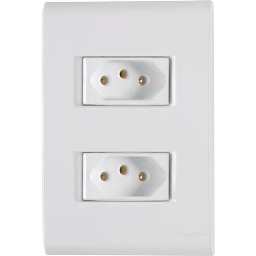 Conjunto 4 X 2 Com 2 Tomadas 2p+t 20a 250v Liz Branco - Tramontina O Conjunto 4x2 com 2 Tomadas 2P+T Tramontina 20 A 250 V Liz Branco vai deixar sua casa muito mais funcional e pronta para conectar múltiplos aparelhos elétricos e eletrônicos. Produzido em termoplástico branco, ele vai garantir maior praticidade e proporcionar um acabamento perfeito entre a placa e a parede, sem deixar frestas e vincos na instalação. Além disso, possui furo oblongo que facilita a fixação e a regulagem da placa à parede e evita que ela fique desalinhada. Sua fixação não é aparente e pode ser utilizada tanto em paredes de alvenaria, quanto em paredes de madeira. A placa ainda pode ser trocada por outras cores da linha, garantindo maior versatilidade. Deixe sua casa equipada e completa com a Tramontina! Recomendações de Uso:
