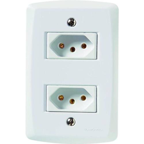 Conjunto 4 X 2 De 2 Tomadas 2p+t 10a 250v - Tramontina Principais Características: - As placas e módulos da linha Lux2 são fabricadas em termoplástico com acabamento brilho na cor branca, que não retém poeira, unindo qualidade e praticidade; - O sistema é modular, em uma peça: placa com suporte incorporado; - Acompanham parafusos para a instalação. Especificações Acabamento Brilho Corrente 10A Cor Branco Tensão Máxima 250 V Linha Lux2 Material Termoplástico Composição Placa e 2 módulos de tomada 10A 250V Altura 14 cm Largura 10 cm Comprimento 15 cm Peso Bruto 0.07 kg
