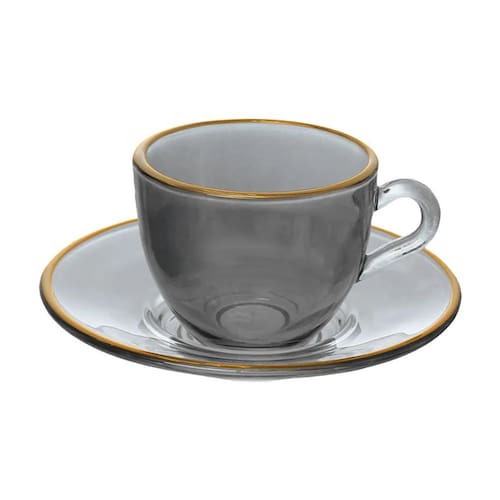 1 Conjunto 4 Xícaras de Café com Pires Borda Dourada Linha Cristal Premium Transparente Preta 85ml JGXC091PT - Hauskraft