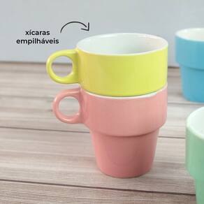CONJUNTO 4 XÍCARAS PORCELANA COLORIDAS EMPILHAVEIS 200ML - 1045