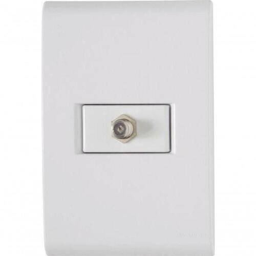 Conjunto 4x2 1 Tomada Tv/sat Coaxial Tramontina Liz Branco As placas e módulo da Linha Liz sãofabricados em termoplástico com acabamento brilho na cor branca , que não retémpoeira, unindo qualidade e praticidade . O sistema é modular, com gradualajuste entre a placa e o suporte , proporcionando perfeito acabamento da placacom a parede . Possuem furo oblongo para facilitar a fixação e a regulagem daplaca á parede. Além disso , possuem furos para a fixação em parede de madeira.A fixação não aparente.Acompanham suporte e parafusos para instalação.Garantiade 5 anos. Recomendações de Uso: A instalação e segurança: É importante que o produto seja instalado por profissional habilitado. Antes de instalar, desligue a energia elétrica.- Foto meramente ilustrativa Informações Adicionais: