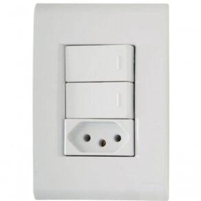 Conjunto 4x2 2 Interruptores Paralelos 10 A 250 V 1 Tomada 2p+t 20 A 250 V Tramontina Liz As placas e módulo da Linha Liz sãofabricados em termoplástico com acabamento brilho na cor branca , que não retémpoeira, unindo qualidade e praticidade . O sistema é modular, com gradualajuste entre a placa e o suporte , proporcionando perfeito acabamento da placacom a parede . Possuem furo oblongo para facilitar a fixação e a regulagem daplaca á parede. Além disso , possuem furos para a fixação em parede de madeira.A fixação não aparente.Acompanham suporte e parafusos para instalação.Garantiade 5 anos. Recomendações de Uso: A instalação e segurança: É importante que o produto seja instalado por profissional habilitado. Antes de instalar, desligue a energia elétrica.- Foto meramente ilustrativa Informações Adicionais: