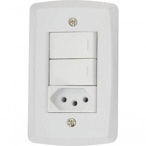 Conjunto 4x2 2 Interruptores Simples 10 A 250 V 1 Tomada 2p+t 10 A 250 V Tramontina Lux2 As placas e módulo da Linha Lux sãofabricados em termoplástico com acabamento brilho na cor branca , que não retémpoeira, unindo qualidade e praticidade . O sistema é modular, com gradualajuste entre a placa e o suporte , proporcionando perfeito acabamento da placacom a parede . Possuem furo oblongo para facilitar a fixação e a regulagem daplaca á parede. Além disso , possuem furos para a fixação em parede de madeira.A fixação não aparente.Acompanham suporte e parafusos para instalação.Garantiade 5 anos. Recomendações de Uso: A instalação e segurança: É importante que o produto seja instalado por profissional habilitado. Antes de instalar, desligue a energia elétrica.- Foto meramente ilustrativa Informações Adicionais: