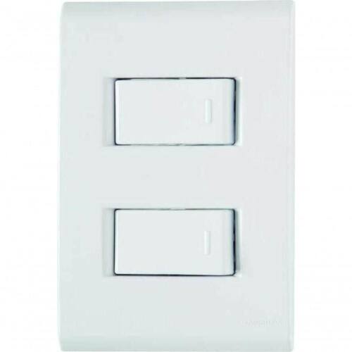 Conjunto 4x2 2 Interruptores Simples Tramontina Liz 10 A 250 V Branco As placas e módulo da Linha Liz sãofabricados em termoplástico com acabamento brilho na cor branca , que não retémpoeira, unindo qualidade e praticidade . O sistema é modular, com gradualajuste entre a placa e o suporte , proporcionando perfeito acabamento da placacom a parede . Possuem furo oblongo para facilitar a fixação e a regulagem daplaca á parede. Além disso , possuem furos para a fixação em parede de madeira.A fixação não aparente.Acompanham suporte e parafusos para instalação.Garantiade 5 anos. Recomendações de Uso: A instalação e segurança: É importante que o produto seja instalado por profissional habilitado. Antes de instalar, desligue a energia elétrica.- Foto meramente ilustrativa Informações Adicionais: