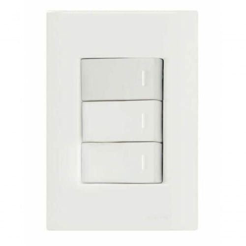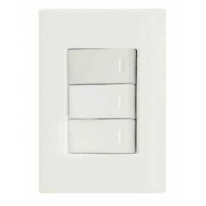 Conjunto 4x2 3 Interruptores Simples 10 A 250 V Tramontina Giz Branco As placas e módulo da Linha Giz sãofabricados em termoplástico com acabamento brilho na cor branca , que não retémpoeira, unindo qualidade e praticidade . O sistema é modular, com gradualajuste entre a placa e o suporte , proporcionando perfeito acabamento da placacom a parede . Possuem furo oblongo para facilitar a fixação e a regulagem daplaca á parede. Além disso , possuem furos para a fixação em parede de madeira.A fixação não aparente.Garantia de 4 anos. Recomendações de Uso: A instalação e segurança: É importante que o produto seja instalado por profissional habilitado. Antes de instalar, desligue a energia elétrica.- Foto meramente ilustrativa Informações Adicionais: