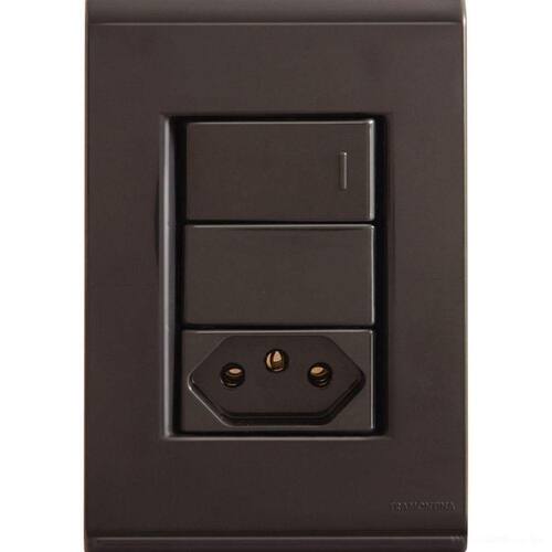 Suas instalações elétricas e seus ambientes merecem contar com o que há de moderno. E assim, é o conjunto 4x2 com 1 interruptor simples 10 A 250 V e 1 tomada 2P+T 10 A 250 V Tramontina Liz grafite. Fabricado em termoplástico com acabamento brilho na cor grafite, ele tem sistema é modular, com gradual ajuste entre a placa e o suporte, proporciona perfeito acabamento da placa com a parede e não tem sua fixação aparente. O conjunto ainda conta com furo oblongo que facilita a fixação e a regulagem da placa à parede e furos específicos para a fixação em paredes de madeira. Um item essencial para quem não abre mão da versatilidade e da beleza em todos os detalhes! ;Acabamento brilho na cor grafite.