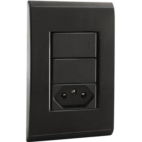 Conjunto 4x2 Com 1 Interruptor Simples 10 A 250 V E 1 Tomada 2p T 10 A 250 V Tramontina Liz Grafite Conjunto 4x2 com 1 Interruptor Simples 10 A 250 V e 1 Tomada 2P T 10 A 250 V Tramontina Liz Grafite Suas instalações elétricas e seus ambientes merecem contar com o que há de moderno. E assim, é o conjunto 4x2 com 1 interruptor simples 10 A 250 V e 1 tomada 2P T 10 A 250 V Tramontina Liz grafite. Fabricado em termoplástico com acabamento brilho na cor grafite, ele tem sistema é modular, com gradual ajuste entre a placa e o suporte, proporciona perfeito acabamento da placa com a parede e não tem sua fixação aparente. O conjunto ainda conta com furo oblongo que facilita a fixação e a regulagem da placa à parede e furos específicos para a fixação em paredes de madeira. Um item essencial para quem não abre mão da versatilidade e da beleza em todos os detalhes!