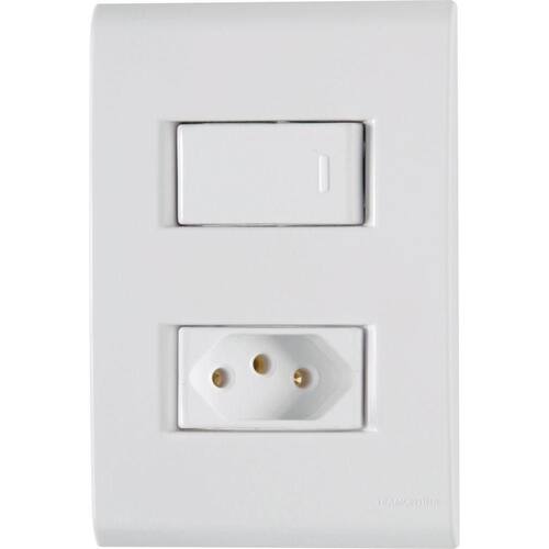 Conjunto 4x2 Com 1 Interruptor Simples 10 A 250 V E 1 Tomada 2p+t 20 A 250 V Tramontina Liz Branco Conjunto 4x2 com 1 Interruptor Simples 10 A 250 V e 1 Tomada 2P T 20 A 250 V Tramontina Liz Branco Utilize o Conjunto 4x2 com 1 Interruptor Simples 10 A 250 V e 1 Tomada 2P T 20 A 250 V Tramontina Liz Branco e tenha um item completo para ligar equipamentos elétricos e eletrônicos e ainda acender as luzes do ambiente. Produzido em termoplástico branco, ele vai garantir maior praticidade e proporcionar um acabamento perfeito entre a placa e a parede, sem deixar frestas e vincos na instalação. Além disso, possui furo oblongo que facilita a fixação e a regulagem da placa à parede e evita que ela fique desalinhada. Sua fixação não é aparente e pode ser utilizada tanto em paredes de alvenaria, quanto em paredes de madeira. A placa ainda pode ser trocada por outras cores da linha, garantindo maior versatilidade. Garanta o melhor para sua casa com a Tramontina!