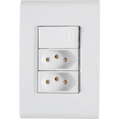 Conjunto 4x2 com 1 Interruptor Simples 10 A 250 V e 2 Tomadas 2P T 20 A 250 V Tramontina Liz Branco