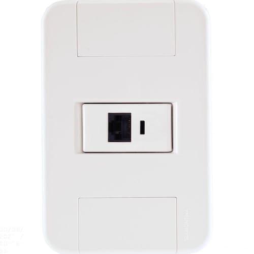 Instalar seus equipamentos de rede ficou muito mais fácil com o Conjunto 4x2 com 1 Tomada RJ45 cat. 6 Tramontina Tablet Branco. Produzido em termoplástico com acabamento brilho na cor branca, ele possui sistema modular com o suporte incorporado e furo oblongo que facilita a fixação e a regulagem da placa à parede, deixando-a reta; além disso, sua instalação não fica aparente, o que deixa seu cômodo ainda mais bonito. O conjunto perfeito para sua casa e que acompanha parafusos para a instalação. Orientações . Características Gerais EAN13 7891435064803 DUN14 17891435064800 NCM 8536.90.90 Peso Líquido 0,0470 kg. Peso Bruto 0,0530 kg. Metragem 0,000600 m³. Dimensões Embalagem (Compr. X Larg. X Alt.) 150x 100x 40 mm. Dimensões Produto (Compr. X Larg. X Alt.) 123x 82x 35 mm. Cor 1 FFFFFF Hexa Observações A instalação e segurança: É importante que o produto seja instalado por profissional habilitado. Antes de instalar, desligue a energia elétrica.