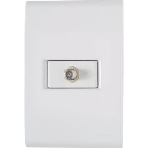 Conjunto 4x2 Com 1 Tomada Tv/sat Coaxial Tramontina Liz Branco Tramontina Conjunto 4x2 com 1 Tomada TV/SAT Coaxial Tramontina Liz Branco Tramontina - Tenha facilidade para conectar os fios com o Conjunto 4x2 com 1 Tomada TV/SAT Coaxial Tramontina Liz Branco! Produzido em termoplástico branco, ele vai garantir maior praticidade e proporcionar um acabamento perfeito entre a placa e a parede, sem deixar frestas e vincos na instalação. Além disso, possui furo oblongo que facilita a fixação e a regulagem da placa à parede e evita que ela fique desalinhada. Sua fixação não é aparente e pode ser utilizada tanto em paredes de alvenaria, quanto em paredes de madeira. A placa ainda pode ser trocada por outras cores da linha, garantindo maior versatilidade. Garanta o melhor para sua casa, com a Tramontina!Orientações. ObservaçõesA instalação e segurança: É importante que o produto seja instalado por profissional habilitado. Antes de instalar, desligue a energia elétrica.Características GeraisEAN137891435043310DUN1417891435043317NCM8536.90.90Peso Líquido0,0490 kg.Peso Bruto0,0550 kg.Metragem0,000600 m.Dimensões Embalagem (Compr. X Larg. X Alt.)150x 100x 40 mm.Dimensões Produto (Compr. X Larg. X Alt.)120x 83x 35 mm.Cor 1FFFFFF Hexa